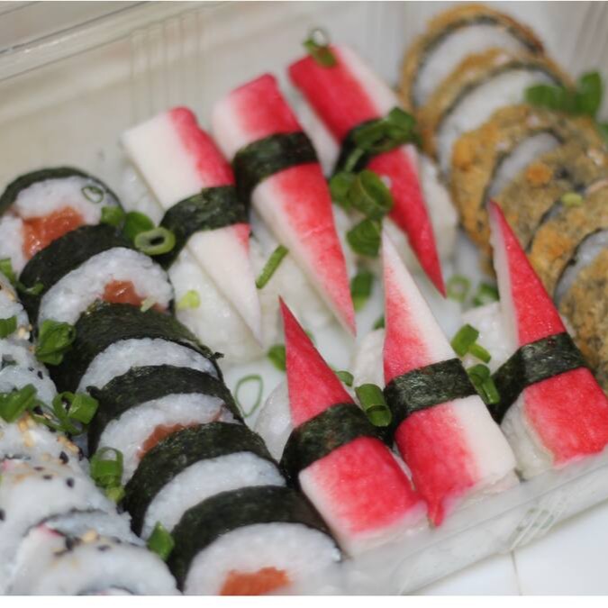 Carioca de salmão e Hossomaki kani Ou Peixe Branco Empanado E Ganhe Uma Água 500ml. Obs: pelo menos 12 peças de cada sabor e recheio diferente.