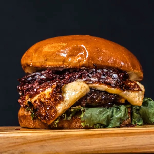 Pão Brioche, Blend De Casa 140g, Queijo Coalho, Salada E Maionese Defumada