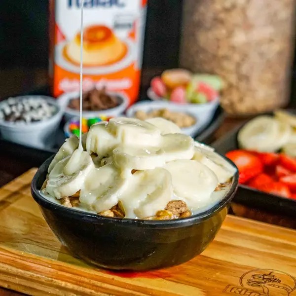 Banana, Granola, Amedoim, Leite em Pó e Leite Condensado + 1 Adicional Gratuito.