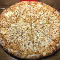 Massa, molho de tomate, mussarela, frango, cheedar e orégano