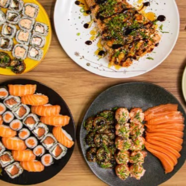 10 Sashimi de salmão + 10 Joy Joy salmão + 10 Uramakis de Salmão + 10 Niguiri Salmão + 10 Hossomaki Salmão + 10 Hot Salmão.