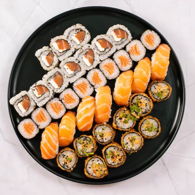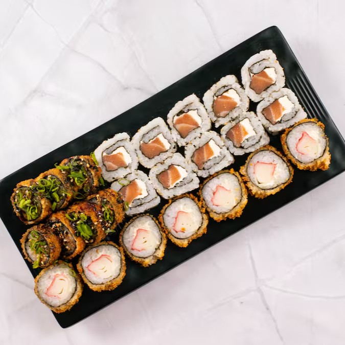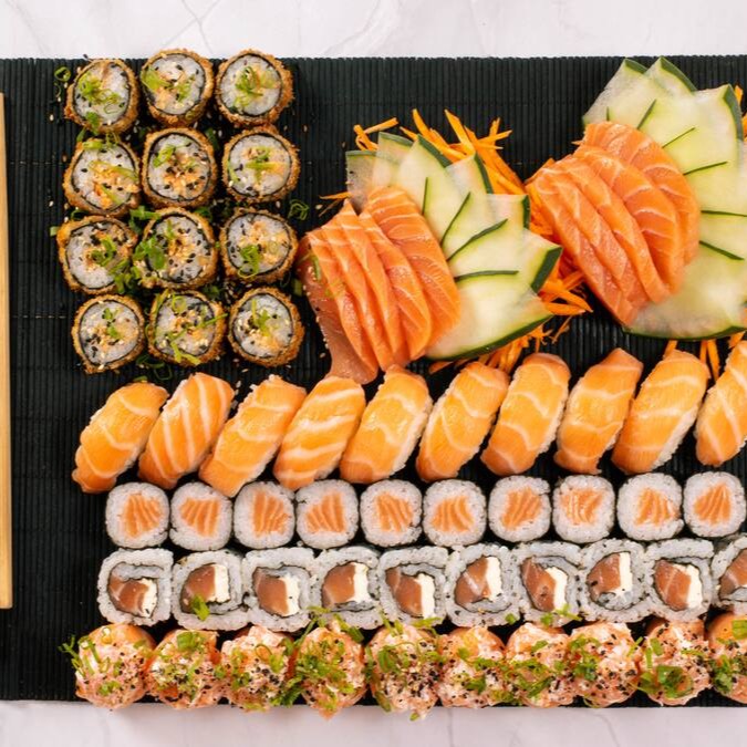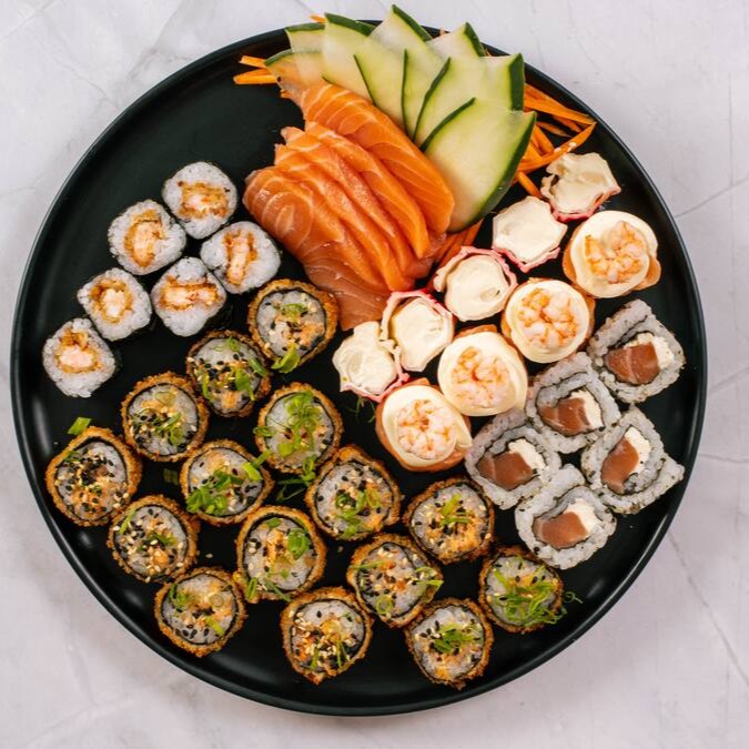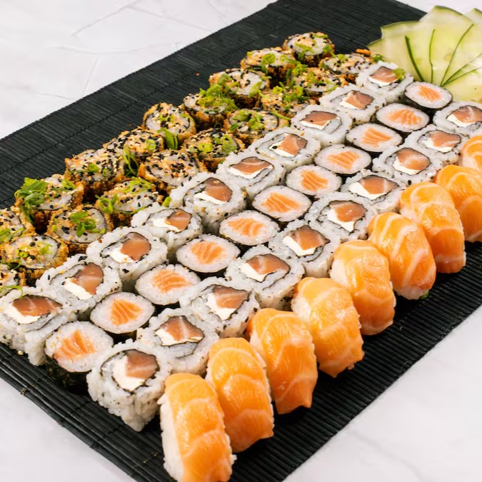 10 Niguiri Salmão + 10 hossomaki Salmão + 20 uramakis Filadelfia + 20 cariocas salmão