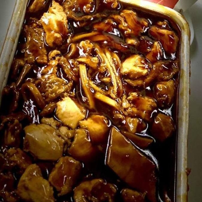 Deliciosamente preparado com Macarrão frito, Carne e Frango ao Molho de Soja.
