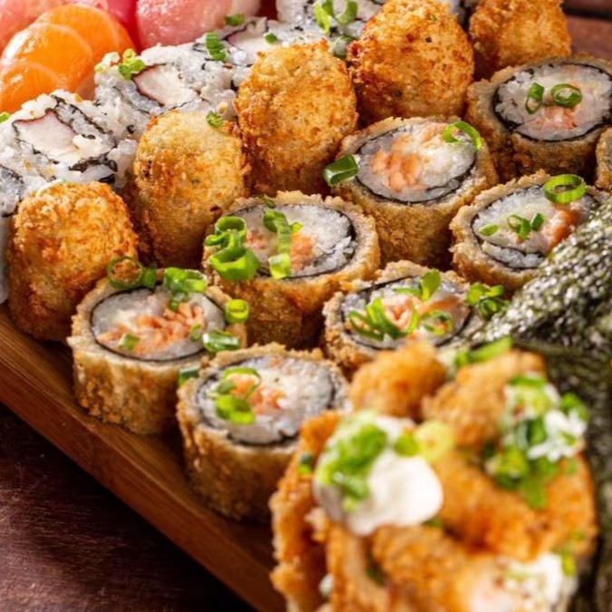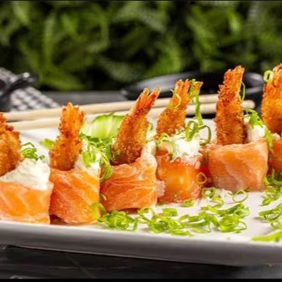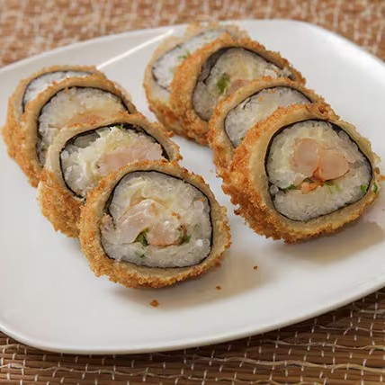 Sushi deliciosamente preparado com Camarão cuidadosamente selecionado, Cream Cheese Original, Arroz Japonês, finalizado com uma camada muito crocante depois de ser empanado e frito.