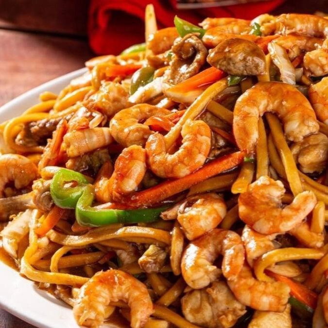 Deliciosamente preparado com Macarrão frito, Carne, Frango, Acelga, Cenoura e Brócolis ao Molho de Soja.