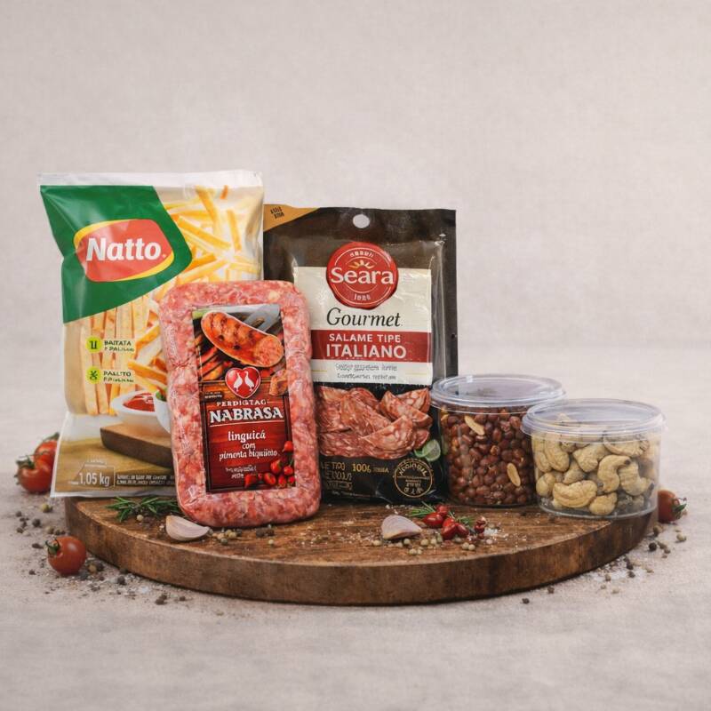 Kit Tira Gosto: Salame 100g + Castanha + Amendoim + 1kg De Batata Natto + Linguiça 600g