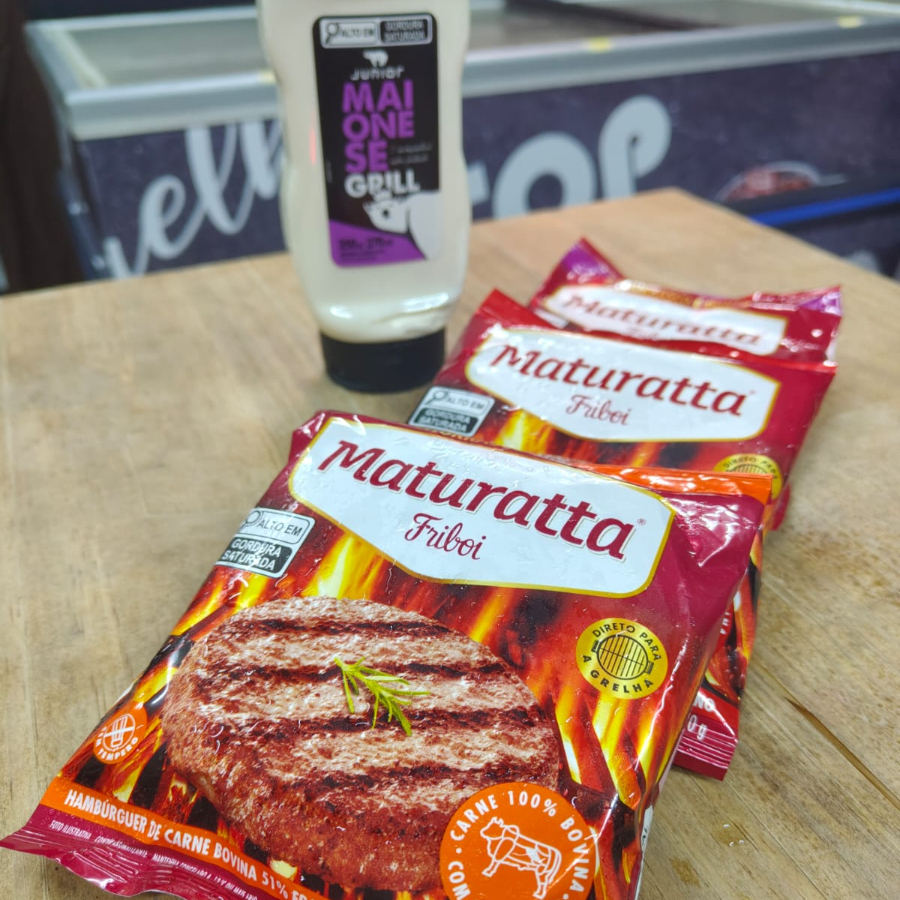 3 hamburguer maturatta: 1 picanha, 1 fraldinha, 1 costela + 1 maionese grill junior