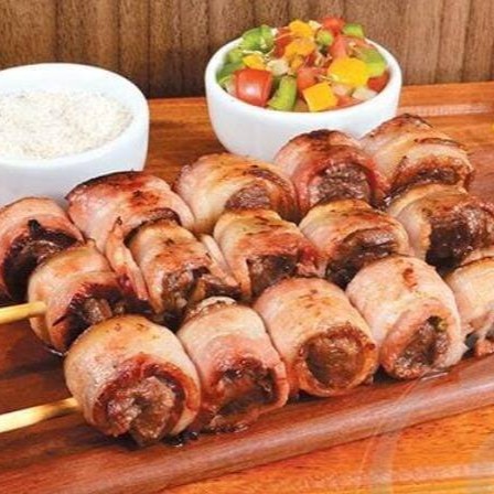 Espetinho De Carne Com Bacon