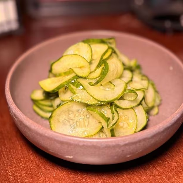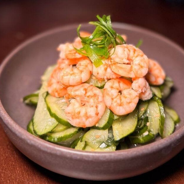 Este prato é uma elegante salada de pepino, fresca e crocante, harmoniosamente combinada com camarões suculentos e perfeitamente cozidos. Uma combinação viva de sabores que oferece um equilíbrio perfeito entre a leveza do pepino e a riqueza do camarão. Esta opção é perfeita para quem busca uma refeição saudável, requintada e repleta de sabor. Experimente!