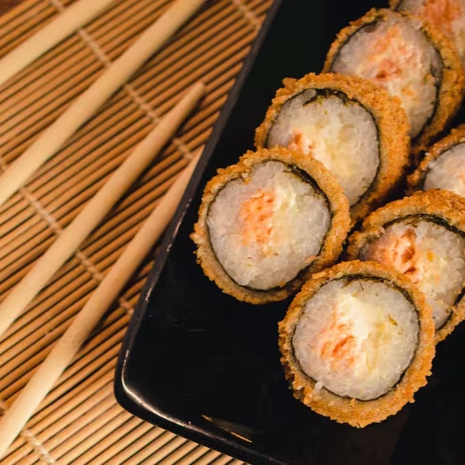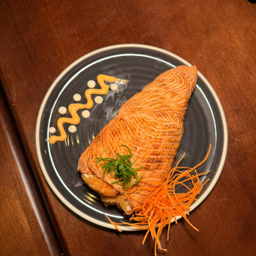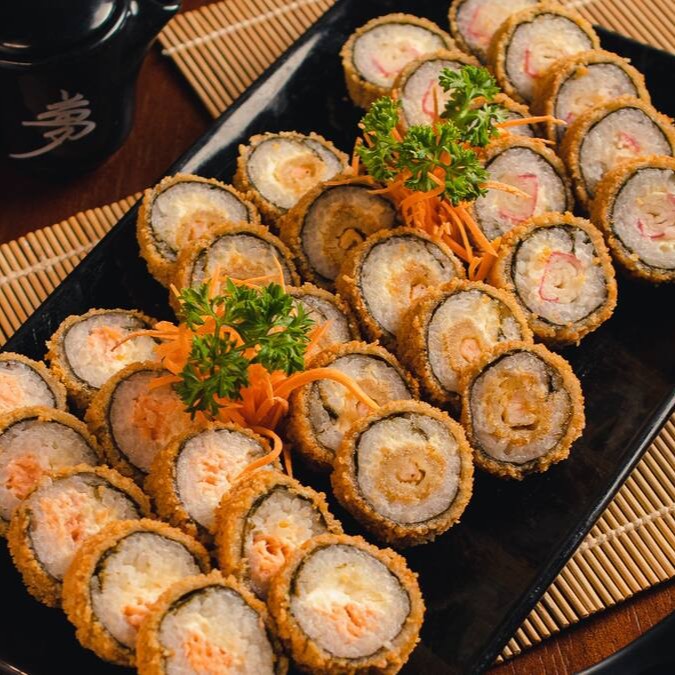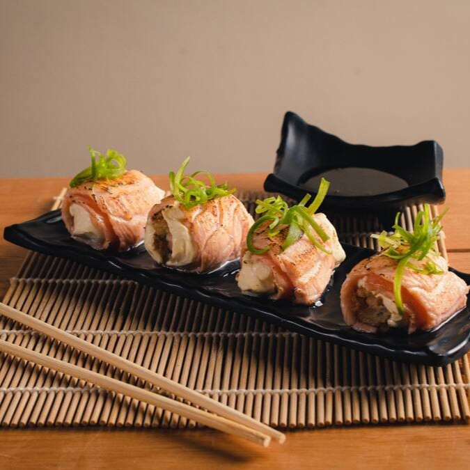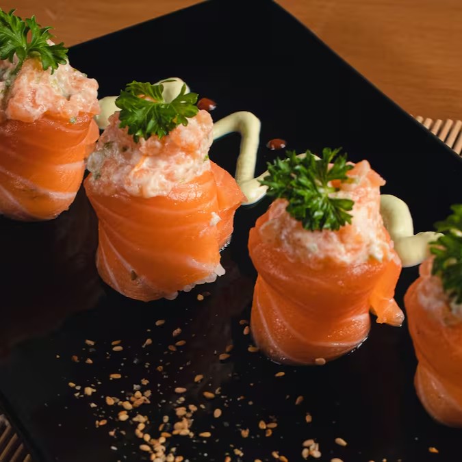 Composto por delicadas lâminas de salmão fresco, recheadas com uma combinação perfeita de arroz sushi de alta qualidade, pedaços de salmão suculentos e irresistível cream cheese. Esta oferta gastronômica é um deleite para os sentidos, proporcionando uma experiência culinária única e inesquecível. Apaixone-se por cada mordida e deixe-se seduzir pela explosão de sabores.
