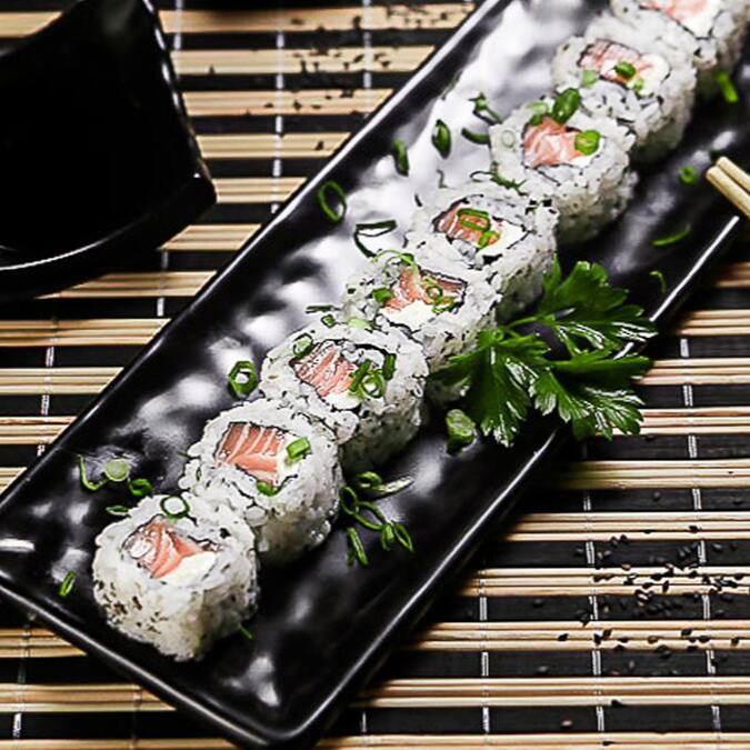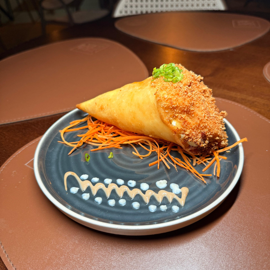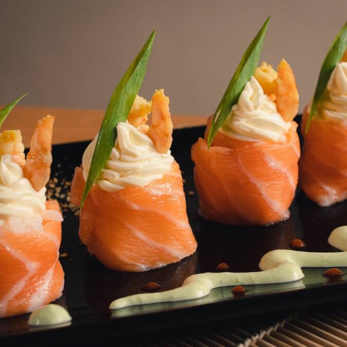 Cuidadosamente enrolado, com a cremosidade suave do cream cheese. O toque final é dado pela cebolinha, trazendo frescor e um leve toque picante. Esta combinação cria um equilíbrio perfeito de sabores que irá encantar o seu paladar. É uma entrada leve e ao mesmo tempo rica em sabor, perfeita para começar sua refeição de maneira inesquecível.