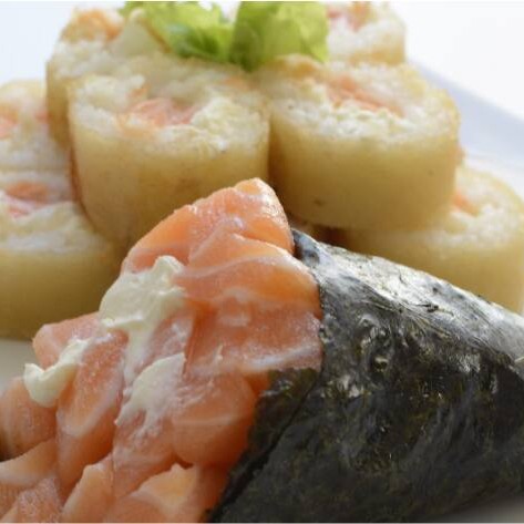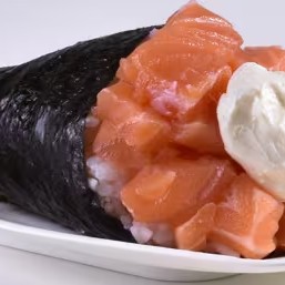 1 temaki filadelfia, 10 hot rolls, salmão e cream cheese.