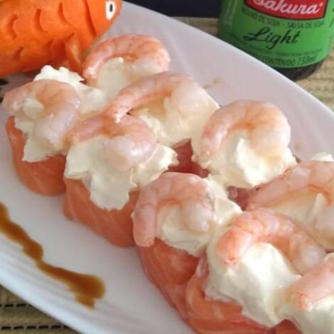 Joy joy de salmão, com camarão, natural ou maçaricado
