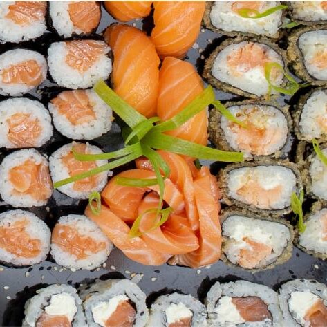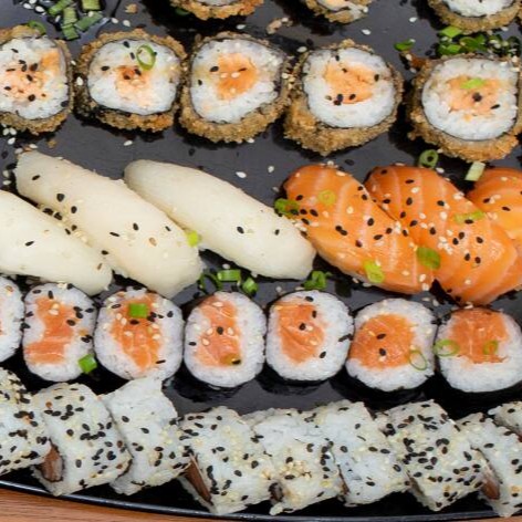 10 filadelfia, 10 hossomaki, 10 carioca, 05 niguiri salmão, 05 sashimi