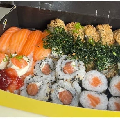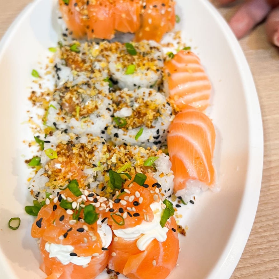 Combinho do Chef: seleção especial com 10 uramakis de kani, 10 cariocas de camarão e 10 harumakis de salmão, preparados com todo o cuidado e sabor da culinária oriental.