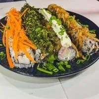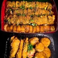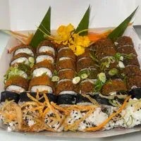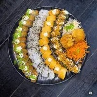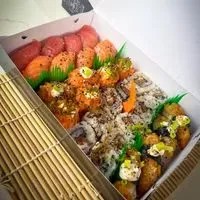 - 12 Uramaki de Camarão empanado - 12 Harumaki de Kani - 12 Cariocas de salmão - 12 Hossomaki de skin - 2 bolinho de salmão