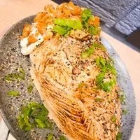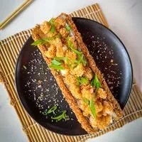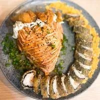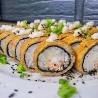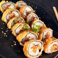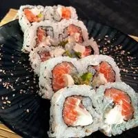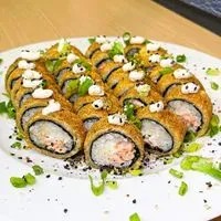 manta de salmão recheada com arroz, camarão empanado, cream cheese e cebolinho.
