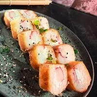 Os melhores cariocas de Kani, arroz enrolado na massa empanada e crocante, com recheio de kani e cream cheese.