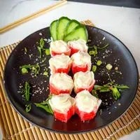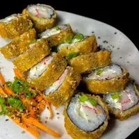 arroz enrolado na massa de harumaki, recheado com kani e cream cheese.
