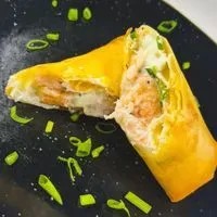 massa de harumaki com recheio de camarão cozido, cream cheese e cebolinho.