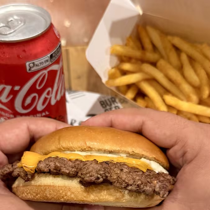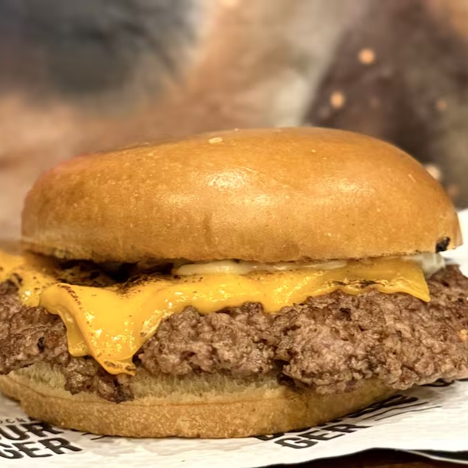 Pão brioche selado na chapa, 90g de um smash burger crocante com queijo cheddar derretido e deliciosa maionese da casa.