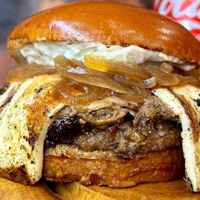 Pão brioche fofinho e macio, maionese da casa extremamente deliciosa, blend de 160g, cupim ao molho barbecue, queijo coalho assado e cebola caramelizada.
