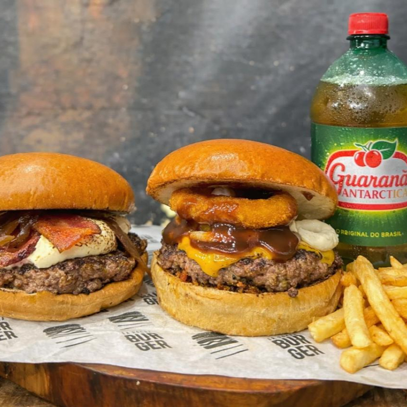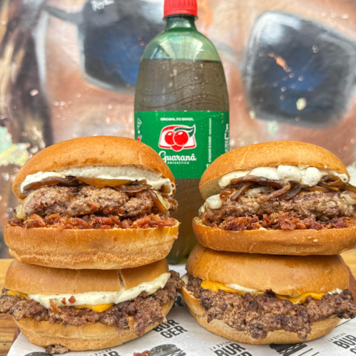 2 Hambúrgueres (Rocha Bacon) + 2 Hambúrgueres (Rochinha burger) + 1 Refrigerante (litro)
