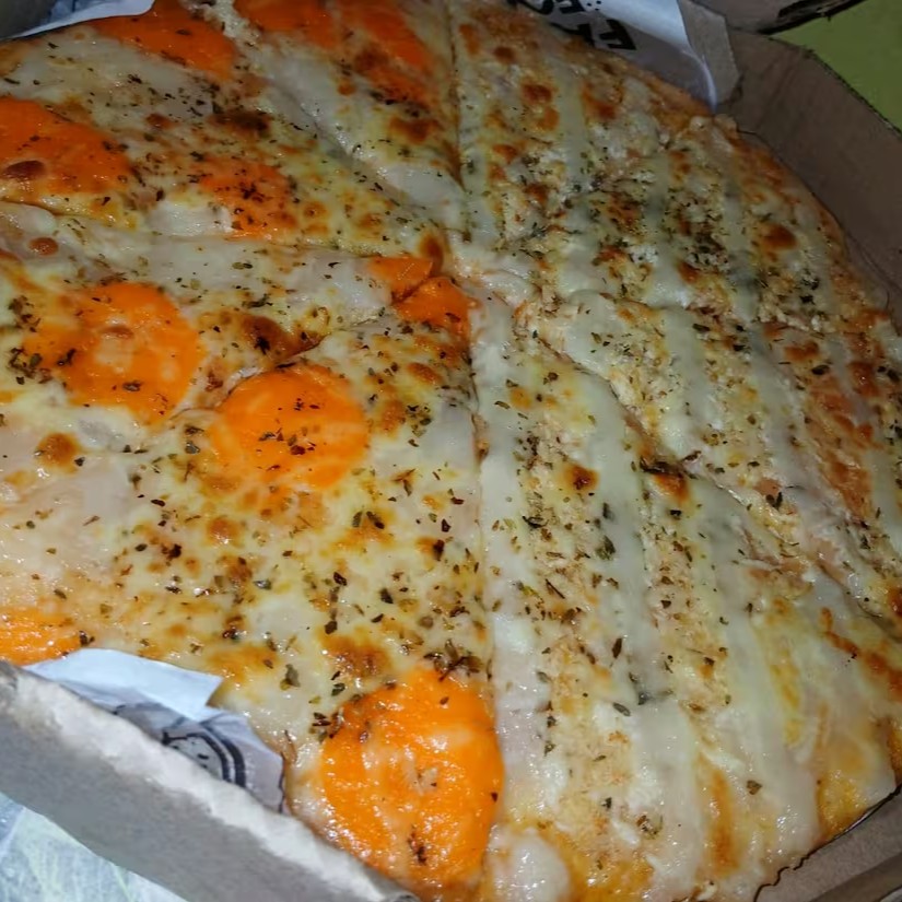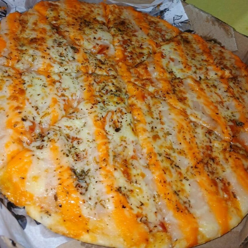 Massa Artesanal da casa, molho especial, queijo mussarela, Catupiry, cheddar, orégano.