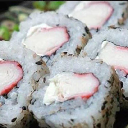 Rolinho de arroz, com alga por dentro, Kani, cream cheese , gergelim e cebolinha