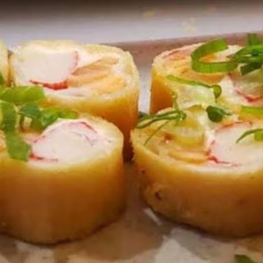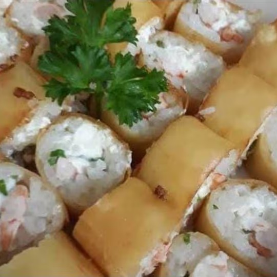 Sushi frito na massa de harumaki, com recheio de Kani e cream cheese, gergelim e cebolinha (11 unidades)