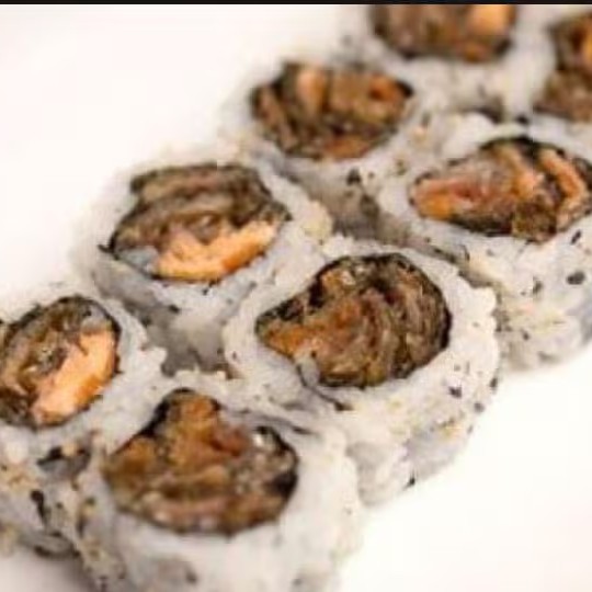 Rolinho de arroz, com alga por dentro, salmão , cream cheese , gergelim e cebolinha