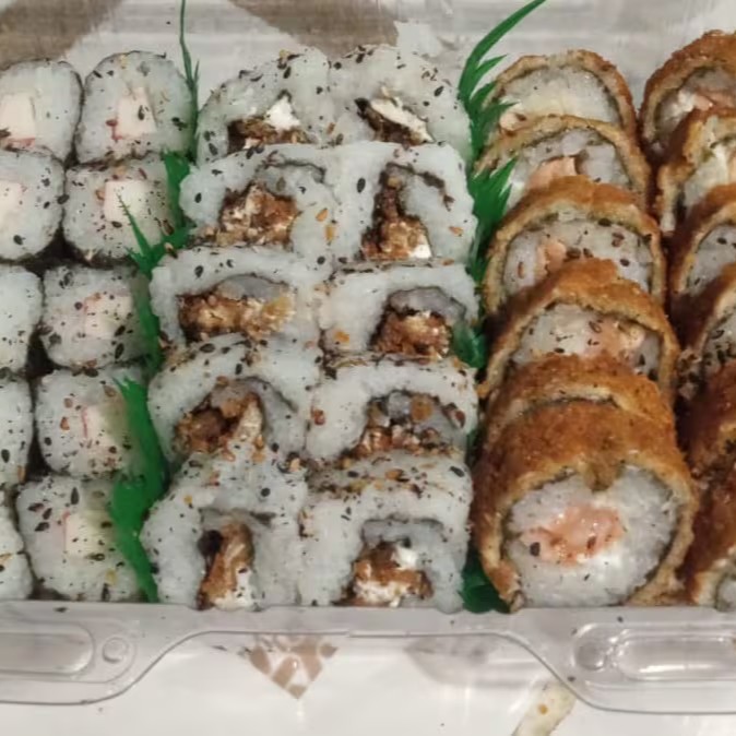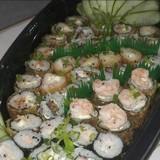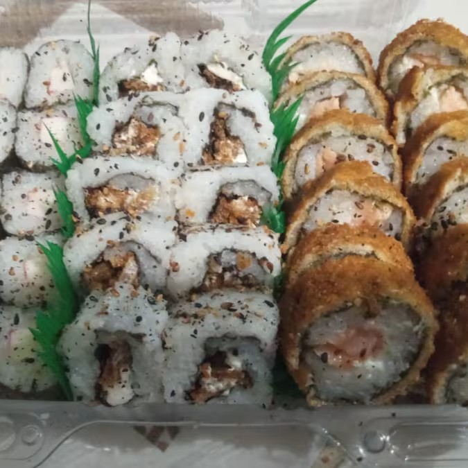 Este 'Combinado de 40 peças' é uma celebração de sabores marinhos. Composto por 5 Hossomakis de camarão, trazendo a delicadeza do mar em cada rolinho. Acompanham 5 Uramakis de skin e 5 Uramakis de Kani, que ressaltam a tradição da culinária japonesa. Adicionamos também 5 Uramakis de salmão, uma escolha perfeita para os amantes deste peixe. Para trazer crocância, incluímos 5 Kani Croqui. Acompanha 3 molhos shoyu em sachê e 2 copinhos de molho teryiaki ou 3 sachês de teryiaki, dependendo da disponibilidade. Finalizamos com um toque brasileiro: 5 canapés carioca de camarão e 10 cariocas de salmão.
