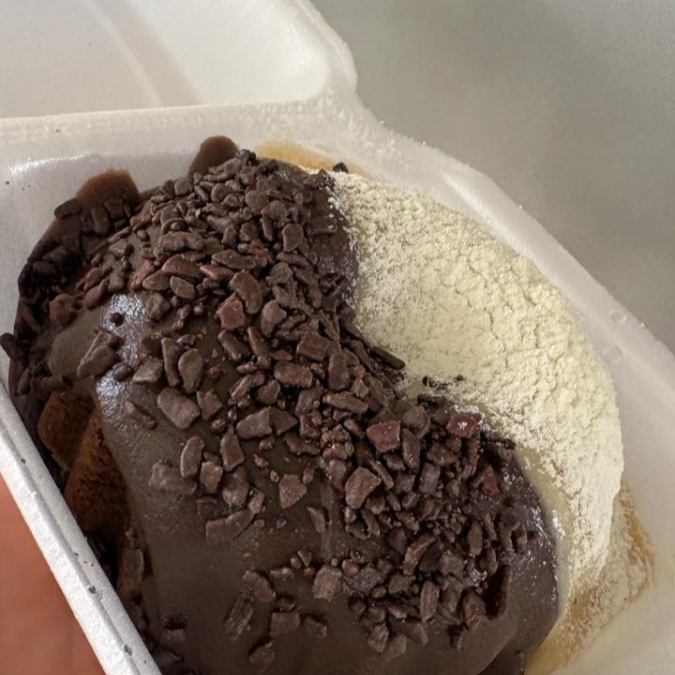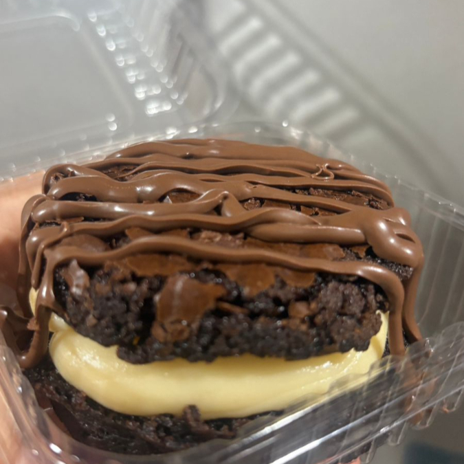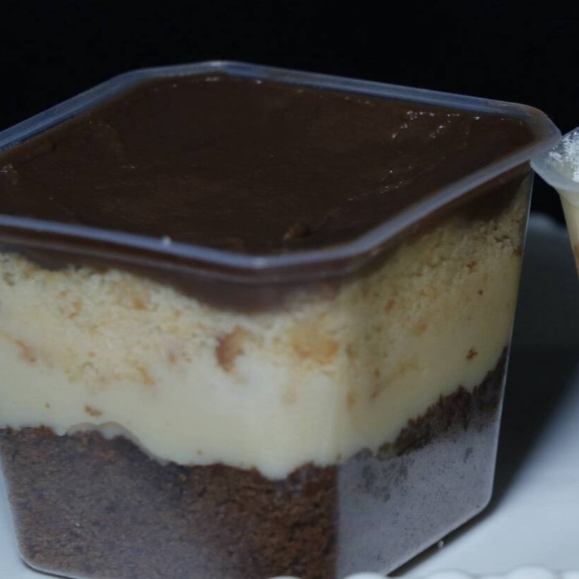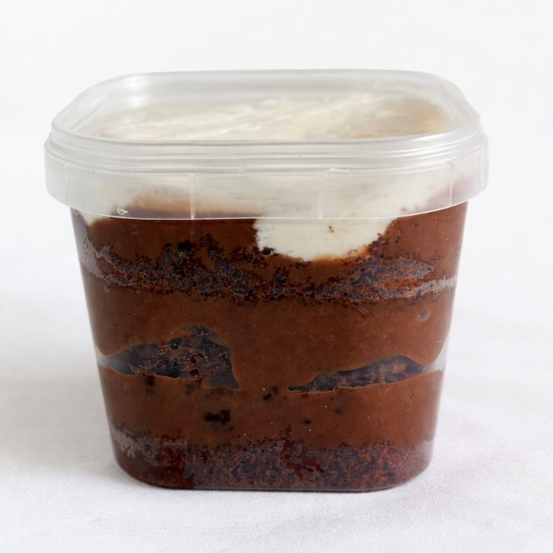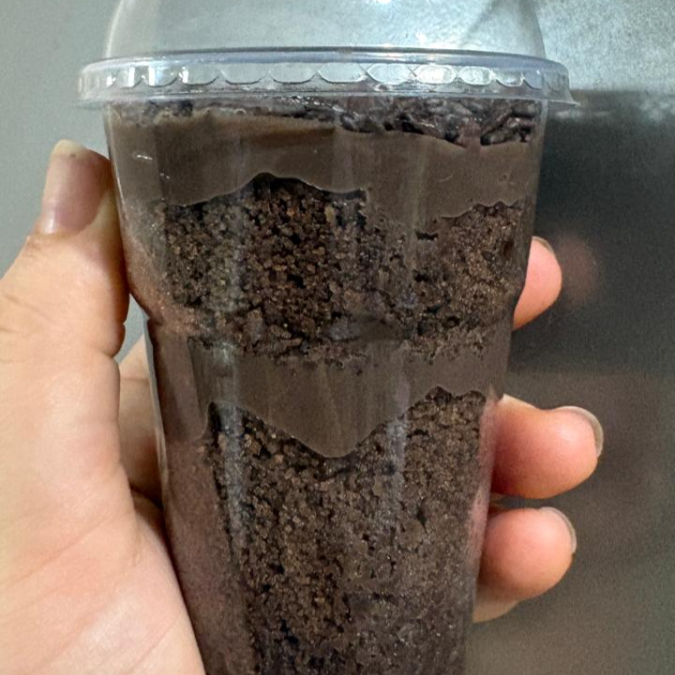 Copo da feliciade com camadas de bolo fofíssimo de chocolate, brigadeiro belga e brownie com finalização de chantilly