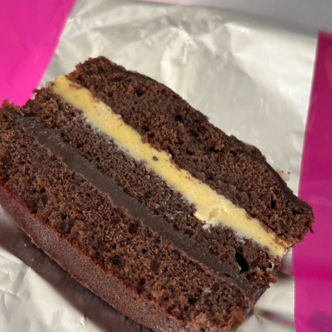 Bolo de massa de chocolate com recheio de brigadeiro ao leite e mousse de chocolate meio amargo