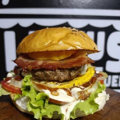 Pão bola ,1 blend 120 gramas de carne selecionada , 1 fatia de queijo mussarela , bacon, ovo frito na chapa , creme cheddar , molho da casa especial, cebola caramelizada , tomate e alface americana