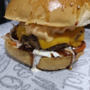 Pão bola ,1 blend carne especialmente selecionada, 1 fatia queijo coalho , creme cheddar , molho da casa especial, barbecue e salada.