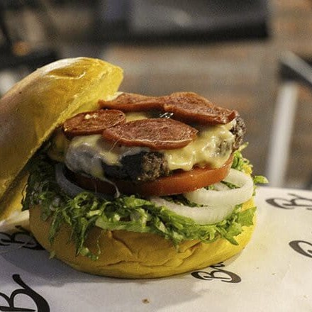 Pão bola ,1 blend 120 gramas carne selecionada , 1 fatiade queijo mussarela , calabresa , creme cheddar , molho da casa especial e cebola caramelizada , tomate e alface americana