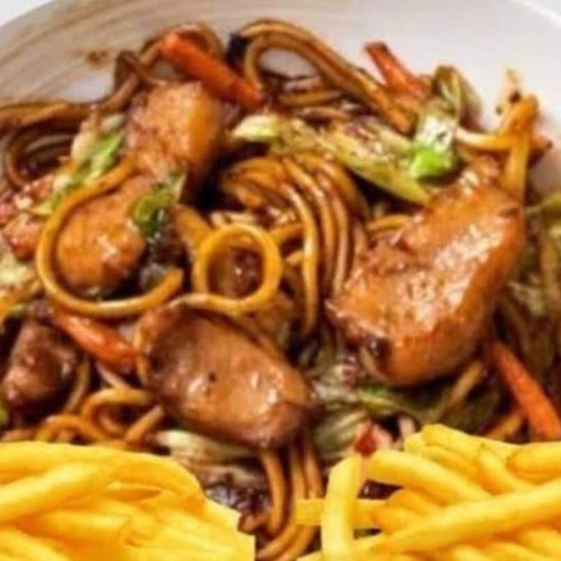 Essa delicia vem com macarrão frito, frango e legumes no molho shoyu. _ _#yakisoba#china#japa#chines#delicia#rapido#facil#delicioso#macarrao