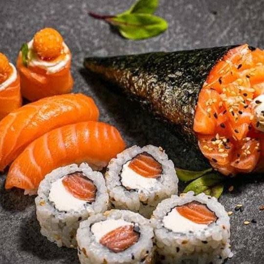 1 Temaki Salmão ( natural ) 3 Niguiri de Salmão 5 Filadélfia de Salmão 2 joy joy de Salmão