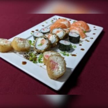 2 Joy joy salmão 5 Fila dél fiade kani 5 Arco íris de kani 3 Niguiri de Camarão 5 Carioca de salmão