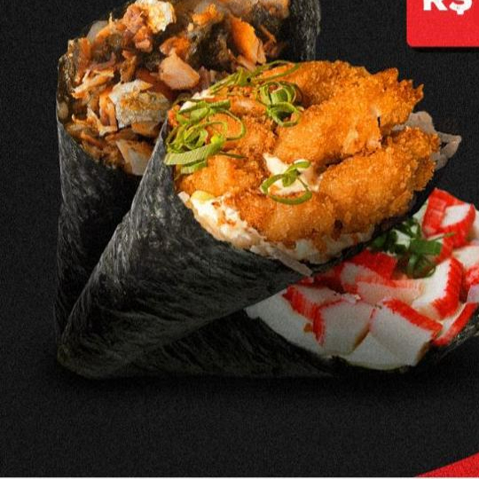 1 temaki de kani 1 temaki de camarão empanado 1 temaki de skin