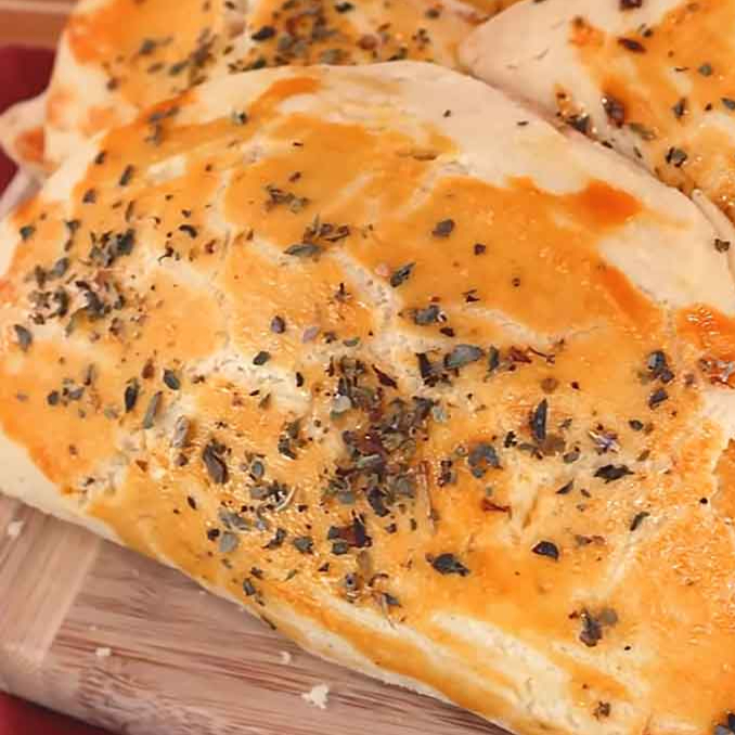 Pizza brotinho, massa caseira com um delicioso molho de tomate e recheio a escolha do cliente.