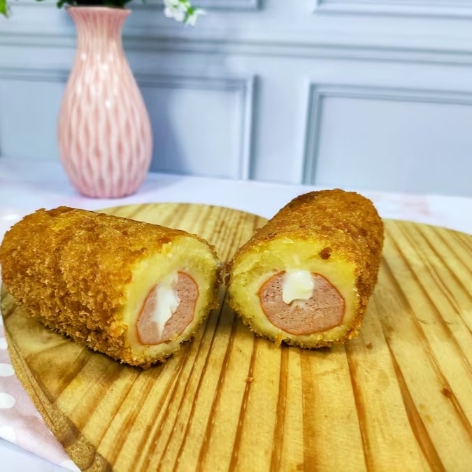 Aprox. 170g Enroladinho de massa de batata com uma super crocância, pois é empando com a farinha panko, recheado com salsicha, Catupiry e queijo mussarela.