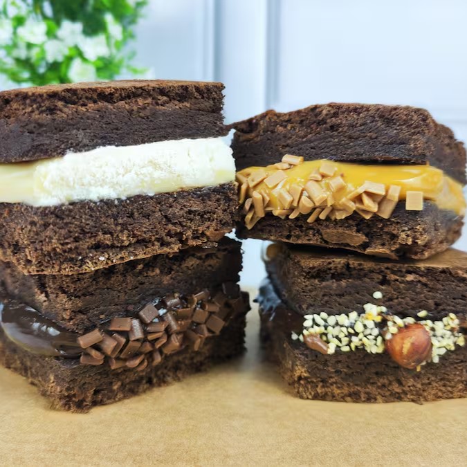 Pedaços de brownie coberto com deliciosos recheios a sua escolha...