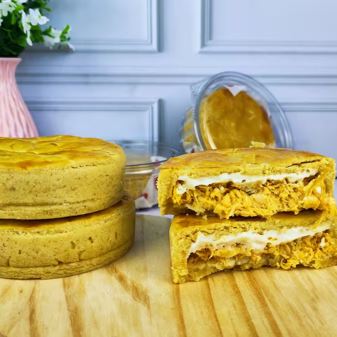 Nossa empada tem uma massa amanteigada e que desmancha na boca, abraçando um recheio generoso e suculento. Nosso segredo? Um cremoso recheio de frango desfiado, cuidadosamente temperado e combinado com a suavidade do requeijão cremoso, criando uma harmonia perfeita de sabores e texturas. Aprox. 170g
