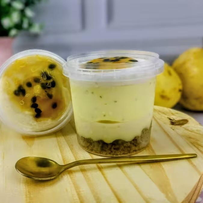Nosso pote é composto por uma farofa super crocante, brigadeiro branco cremoso, nosso delicioso creme de maracujá finalizado com musse de leite Ninho, geleia artesanal de maracujá. Aprox.200g