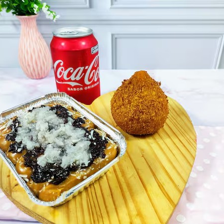 Um Brownie Recheado 140g + Um Salgado + Coca Cola 350ml