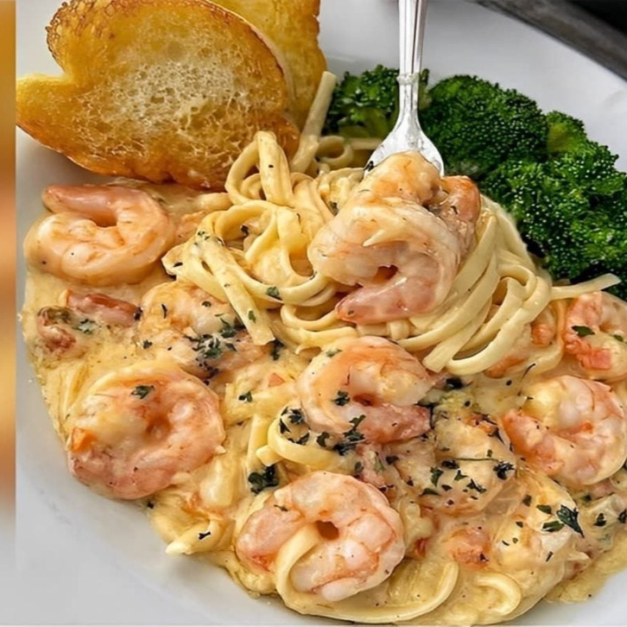 Escolha sua massa e vem com esse camarão selado no alho e óleo, acompanhado com o clássico molho rose, queijo mussarela, ervilha finalizado com cream cheese cebolinha e bacon crocante.