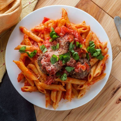 Penne Rigate, molho pomodoro natural, cebolinha, parmesão ralado