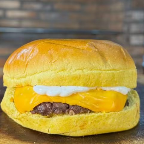 Um smash burguer simples, mas muito bem executado. Pão fofinho selado na chapa, hambúrguer 70g prensado na chapa até criar aquela crostinha perfeita, 2 fatias de queijo cheddar (Polenghi) e a nossa maionese do Major. Impossível conseguir comer um só.